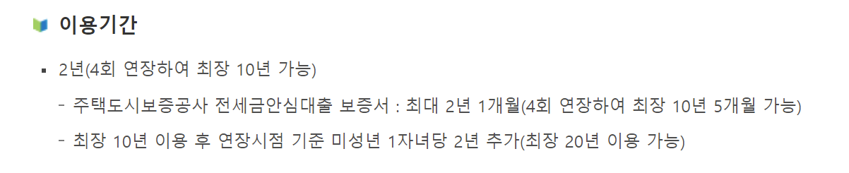 대출 기간은 1회 당 2년(4회 연장하여 최장 10년 가능) 가능해요!