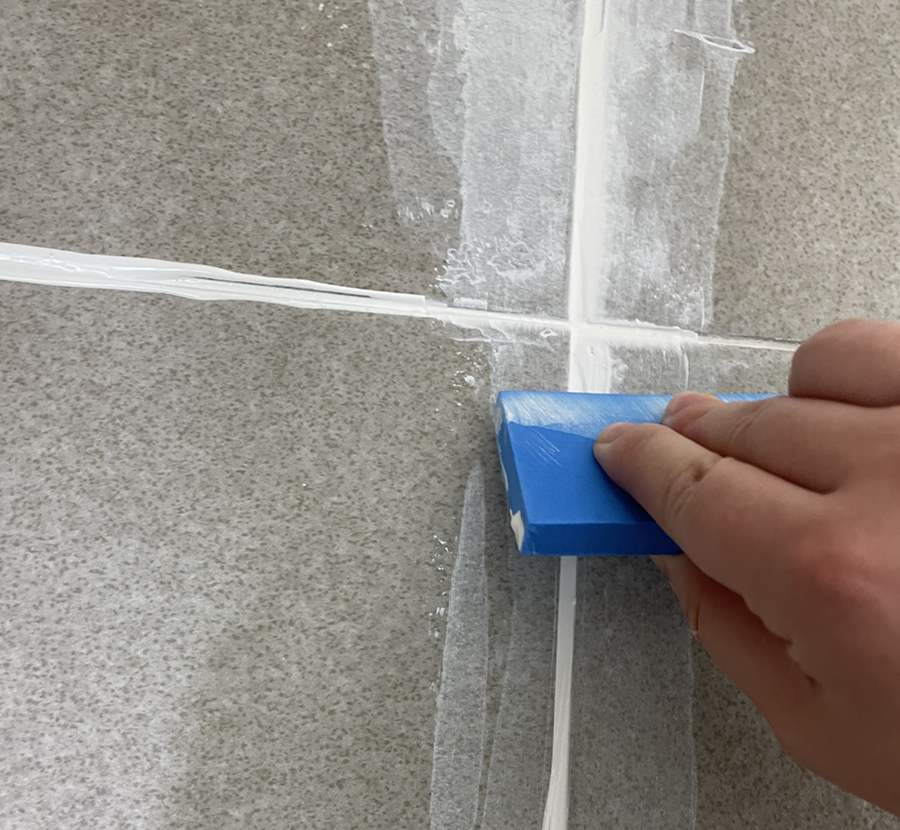 그리고는 조심스럽게 줄눈코팅제를 발라줘요